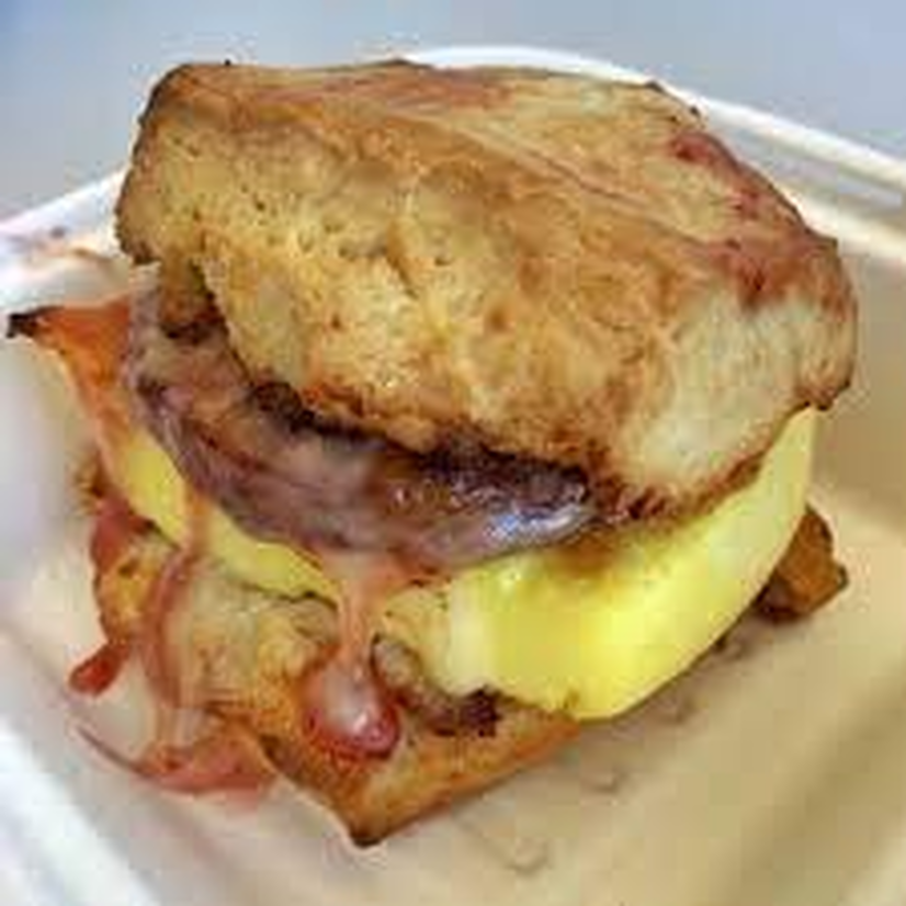 Your choice of Egg & Cheddar or Egg, Bacon and Cheddar served on a fresh baked biscuit.