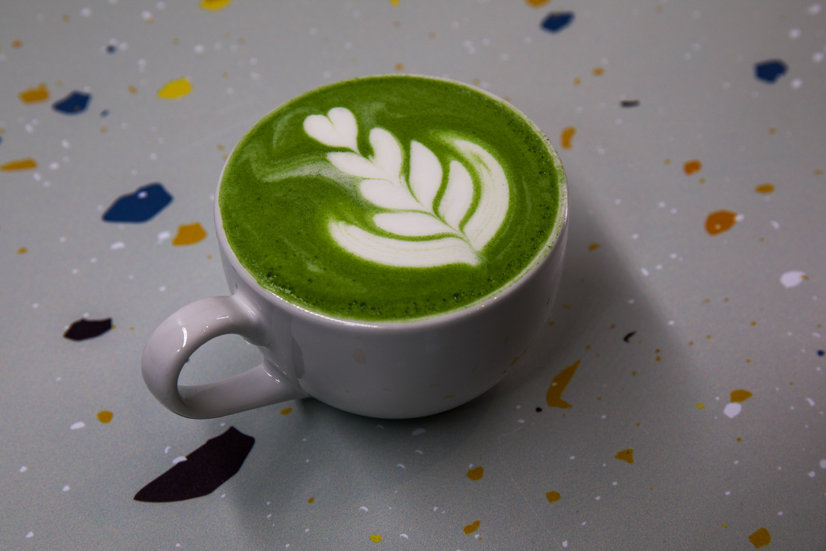 Spirit Tea's Kodemari Matcha powder (unsweetened) with your choice of steamed milk.