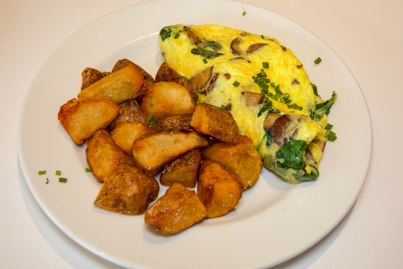 Omelette made with 3 farm eggs, cremini mushrooms, baby kale and goat cheese. Served with a side of home fries.