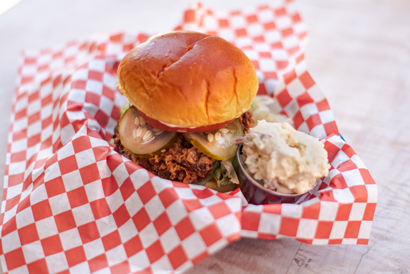 Buttermilk brined and breaded boneless chicken, super special sauce, pickles on a toasted potato bun.